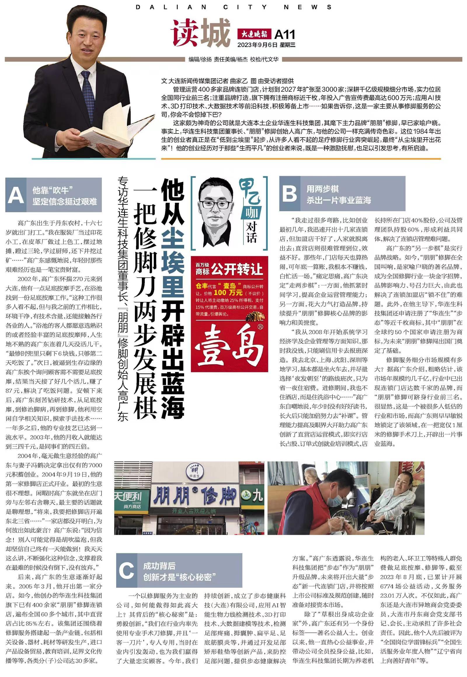 华连生科技集团董事长、“朋朋”修脚创始人高广东接受《大连晚报》专访。