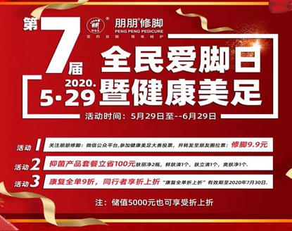 关注朋朋修脚微信公众平台,参加健康美足大赛投票,并转发至朋友圈拉票:修脚最低9.9元,具体价格以各分公司为准。